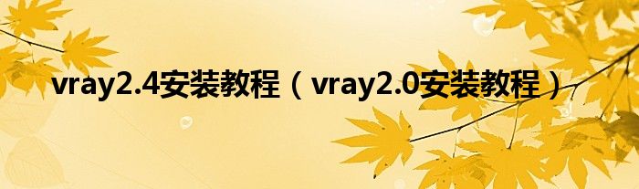 vray2.4安装教程(vray2.0安装教程)