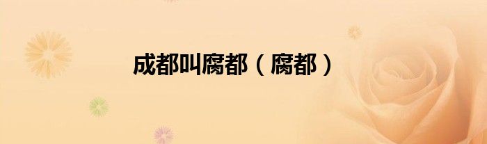 大家好,小晋来为大家解答以下问题,关于成都叫腐都,腐都很多人还不知道,今天让我们一起来看看吧!