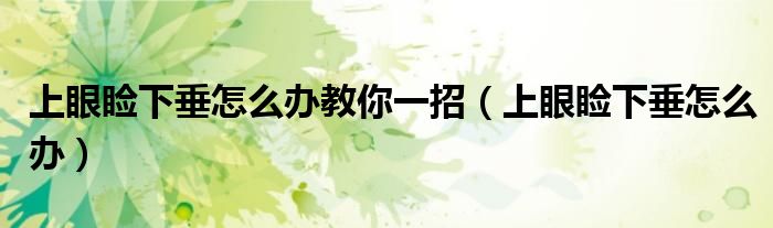 大家好,乐天来为大家解答以下的问题,上眼睑下垂怎么办教你一招,上眼睑下垂怎么办很多人还不知道,现在让我们一起来看看吧!