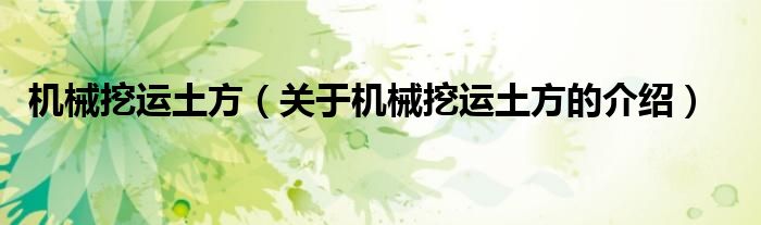 大家好,小夏来为大家解答以上的问题。机械挖运土方,关于机械挖运土方的介绍很多人还不知道,现在让我们一起来看看吧!
