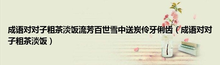 大家好,小联来为大家解答以上的问题。成语对对子粗茶淡饭流芳百世雪中送炭伶牙俐齿,成语对对子粗茶淡饭这个很多人还不知道,现在让我们一起来看看吧!