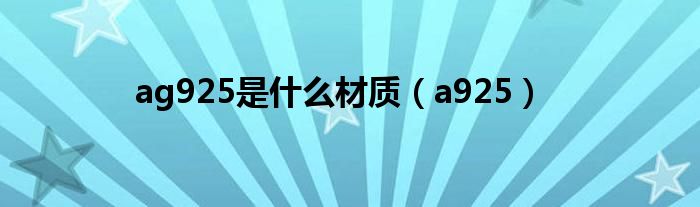 大家好,来宝来为大家解答以下问题,ag925是什么材质,a925很多人还不知道,今天让我们一起来看看吧!