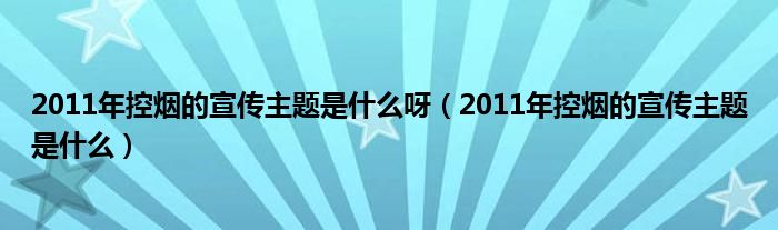 2011年控烟的宣传主题是什么呀(2011年控烟的宣传主题是什么)