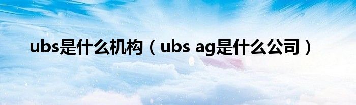 ubs是什么机构(ubs ag是什么公司)