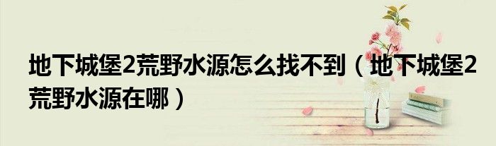 大家好,小晋来为大家解答以下问题,关于地下城堡2荒野水源怎么找不到,地下城堡2荒野水源在哪很多人还不知道,今天让我们一起来看看吧!