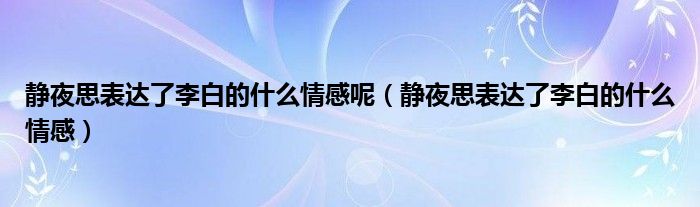 大家好,小夏来为大家讲解下。静夜思表达了李白的什么情感呢,静夜思表达了李白的什么情感很多人还不知道,现在让我们一起来看看吧!