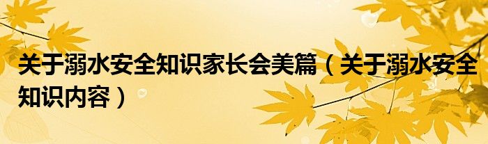 大家好,小联来为大家解答以上的问题。关于溺水安全知识家长会美篇,关于溺水安全知识内容这个很多人还不知道,现在让我们一起来看看吧!