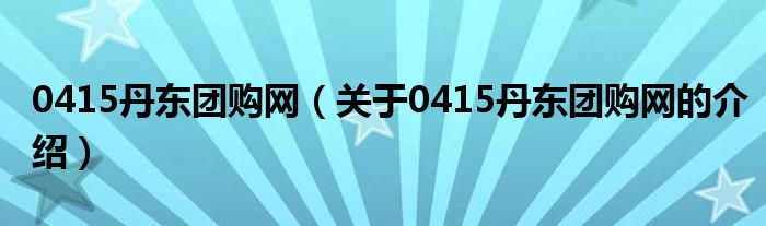 大家好,小虎来为大家解答以上的问题。0415丹东团购网,关于0415丹东团购网的介绍很多人还不知道,现在让我们一起来看看吧!
