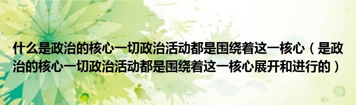 大家好,小联来为大家解答以上的问题。什么是政治的核心一切政治活动都是围绕着这一核心,是政治的核心一切政治活动都是围绕着这一核心展开和进行的这个很多人还不知道,现在让我们一起来看看吧!