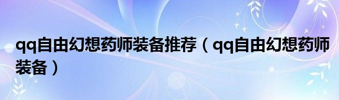 大家好,我是小科,我来为大家解答以上问题。qq自由幻想药师装备推荐,qq自由幻想药师装备很多人还不知道,现在让我们一起来看看吧!