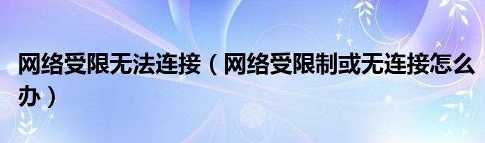 大家好,来宝来为大家解答以下问题,网络受限无法连接,网络受限制或无连接怎么办很多人还不知道,今天让我们一起来看看吧!