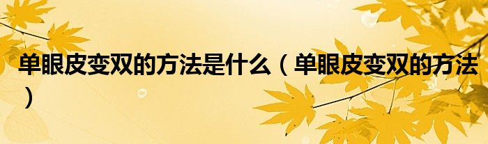 大家好,乐天来为大家解答以下的问题,单眼皮变双的方法是什么,单眼皮变双的方法很多人还不知道,现在让我们一起来看看吧!
