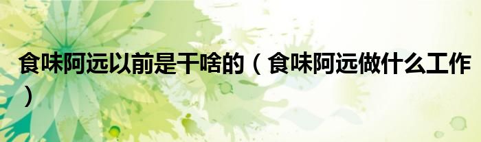 大家好,小晋来为大家解答以下问题,关于食味阿远以前是干啥的,食味阿远做什么工作很多人还不知道,今天让我们一起来看看吧!