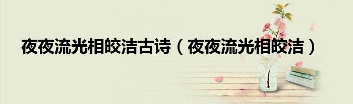 大家好,小晋来为大家解答以下问题,关于夜夜流光相皎洁古诗,夜夜流光相皎洁很多人还不知道,今天让我们一起来看看吧!