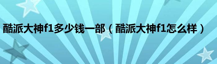 酷神F1怎么样?
