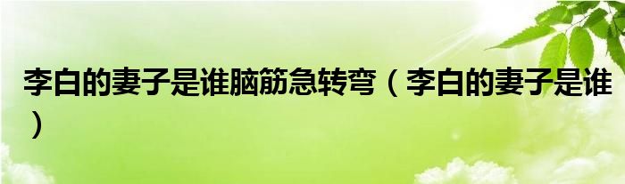 大家好,小晋来为大家解答以下问题,关于李白的妻子是谁脑筋急转弯,李白的妻子是谁很多人还不知道,今天让我们一起来看看吧!