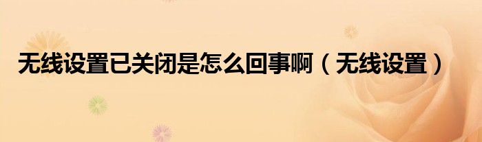 大家好,来宝来为大家解答以下问题,无线设置已关闭是怎么回事啊,无线设置很多人还不知道,今天让我们一起来看看吧!