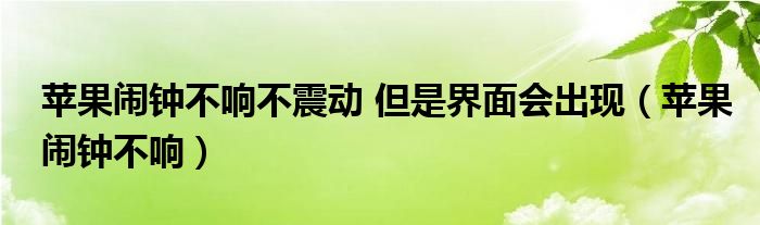 大家好,小晋来为大家解答以下问题,关于苹果闹钟不响不震动 但是界面会出现,苹果闹钟不响很多人还不知道,今天让我们一起来看看吧!