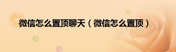 微信怎么置顶聊天(微信怎么置顶)