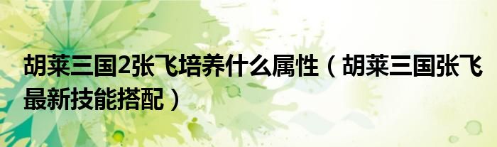 大家好,来宝来为大家解答以下问题,胡莱三国2张飞培养什么属性,胡莱三国张飞最新技能搭配很多人还不知道,今天让我们一起来看看吧!