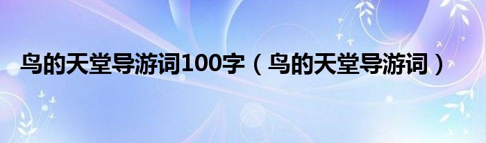 大家好,小晋来为大家解答以下问题,关于鸟的天堂导游词100字,鸟的天堂导游词很多人还不知道,今天让我们一起来看看吧!