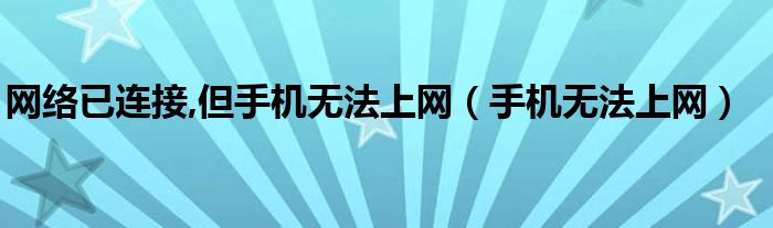 大家好,来宝来为大家解答以下问题,网络已连接,但手机无法上网,手机无法上网很多人还不知道,今天让我们一起来看看吧!