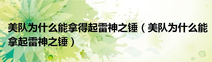 美队为什么能拿得起雷神之锤(美队为什么能拿起雷神之锤)