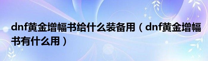 大家好,小晋来为大家解答以下问题,关于dnf黄金增幅书给什么装备用,dnf黄金增幅书有什么用很多人还不知道,今天让我们一起来看看吧!