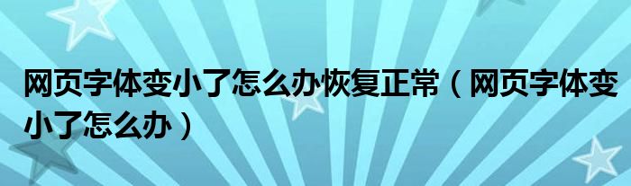 大家好,来宝来为大家解答以下问题,网页字体变小了怎么办恢复正常,网页字体变小了怎么办很多人还不知道,今天让我们一起来看看吧!