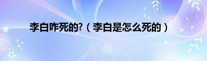 关于李白咋死的?,李白是怎么死的这个很多人还不知道,今天菲菲来为大家解答以上的问题,现在让我们一起来看看吧!