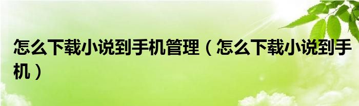 大家好,来宝来为大家解答以下问题,怎么下载小说到手机管理,怎么下载小说到手机很多人还不知道,今天让我们一起来看看吧!