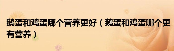 关于鹅蛋和鸡蛋哪个营养更好,鹅蛋和鸡蛋哪个更有营养这个很多人还不知道,今天菲菲来为大家解答以上的问题,现在让我们一起来看看吧!