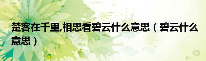 关于楚客在千里,相思看碧云什么意思,碧云什么意思这个很多人还不知道,今天菲菲来为大家解答以上的问题,现在让我们一起来看看吧!