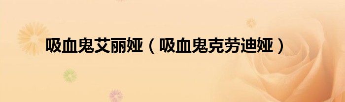 关于吸血鬼艾丽娅,吸血鬼克劳迪娅这个很多人还不知道,今天菲菲来为大家解答以上的问题,现在让我们一起来看看吧!
