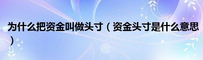为什么把资金叫做头寸(资金头寸是什么意思)
