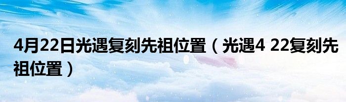 大家好,来宝来为大家解答以下问题,4月22日光遇复刻先祖位置,光遇4 22复刻先祖位置很多人还不知道,今天让我们一起来看看吧!