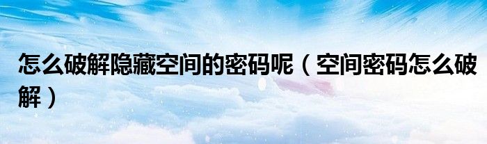 大家好,来宝来为大家解答以下问题,怎么破解隐藏空间的密码呢,空间密码怎么破解很多人还不知道,今天让我们一起来看看吧!