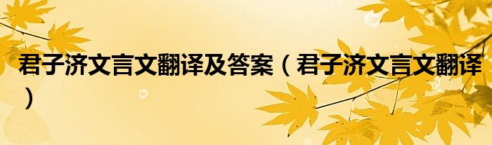 关于君子济文言文翻译及答案,君子济文言文翻译这个很多人还不知道,今天菲菲来为大家解答以上的问题,现在让我们一起来看看吧!