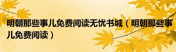 明朝那些事儿免费阅读无忧书城(明朝那些事儿免费阅读)