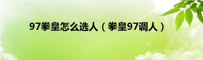 大家好,来宝来为大家解答以下问题,97拳皇怎么选人,拳皇97调人很多人还不知道,今天让我们一起来看看吧!