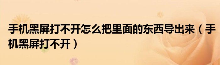 大家好,来宝来为大家解答以下问题,手机黑屏打不开怎么把里面的东西导出来,手机黑屏打不开很多人还不知道,今天让我们一起来看看吧!
