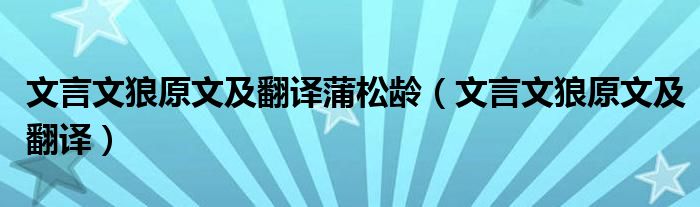 关于文言文狼原文及翻译蒲松龄,文言文狼原文及翻译这个很多人还不知道,今天菲菲来为大家解答以上的问题,现在让我们一起来看看吧!