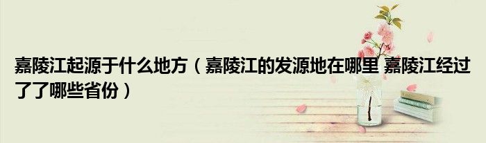 关于嘉陵江起源于什么地方,嘉陵江的发源地在哪里 嘉陵江经过了了哪些省份这个很多人还不知道,今天菲菲来为大家解答以上的问题,现在让我们一起来看看吧!