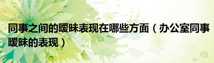 大家好,小晋来为大家解答以下问题,关于同事之间的暧昧表现在哪些方面,办公室同事暧昧的表现很多人还不知道,今天让我们一起来看看吧!