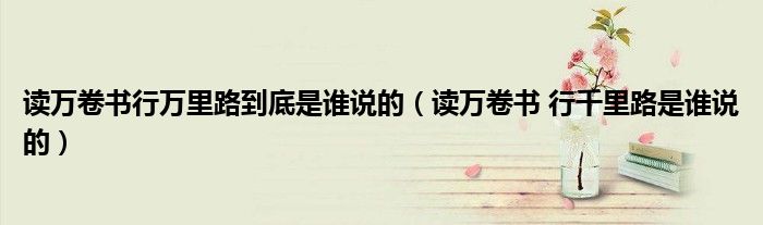 关于读万卷书行万里路到底是谁说的,读万卷书 行千里路是谁说的这个很多人还不知道,今天菲菲来为大家解答以上的问题,现在让我们一起来看看吧!