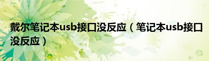 大家好,来宝来为大家解答以下问题,戴尔笔记本usb接口没反应,笔记本usb接口没反应很多人还不知道,今天让我们一起来看看吧!
