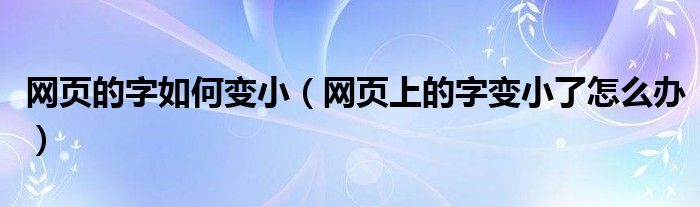 大家好,来宝来为大家解答以下问题,网页的字如何变小,网页上的字变小了怎么办很多人还不知道,今天让我们一起来看看吧!