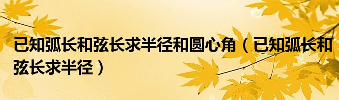 关于已知弧长和弦长求半径和圆心角,已知弧长和弦长求半径这个很多人还不知道,今天菲菲来为大家解答以上的问题,现在让我们一起来看看吧!