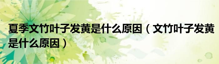关于夏季文竹叶子发黄是什么原因,文竹叶子发黄是什么原因这个很多人还不知道,今天菲菲来为大家解答以上的问题,现在让我们一起来看看吧!