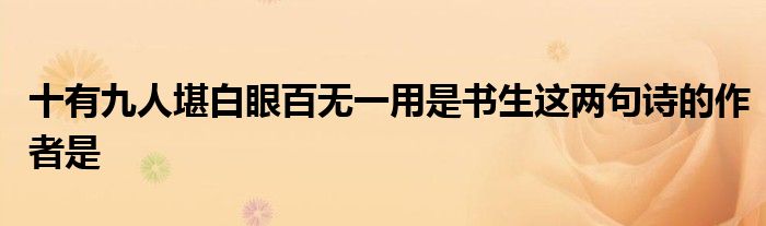 关于十有九人堪白眼百无一用是书生这两句诗的作者是这个很多人还不知道,今天菲菲来为大家解答以上的问题,现在让我们一起来看看吧!